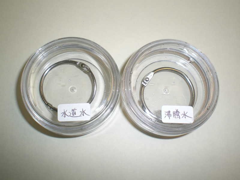 ・「沸騰水」は、サビのもとになる水道水中の酸素、塩素を蒸発させた水として用意しました。