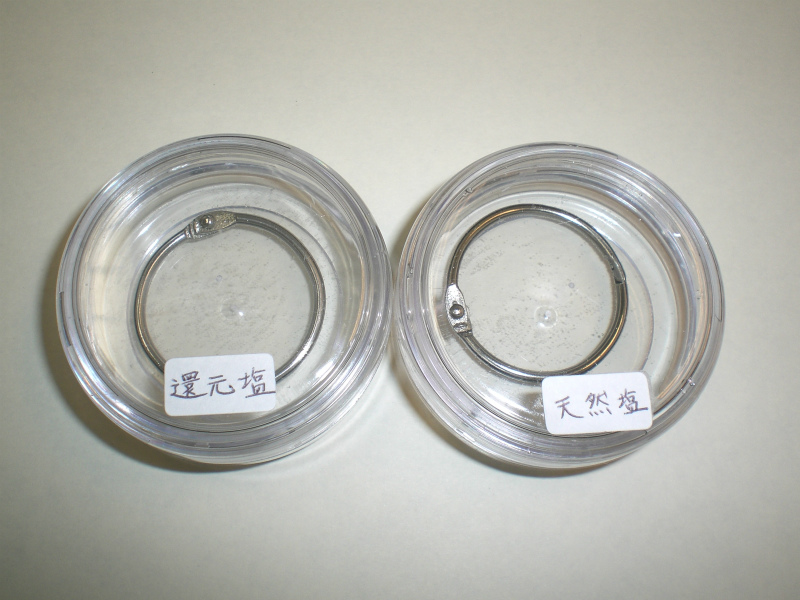 一般的に塩水は鉄をサビ(酸化)させますが、「還元力がある塩」はどれくらい酸化を防げるかが焦点です。